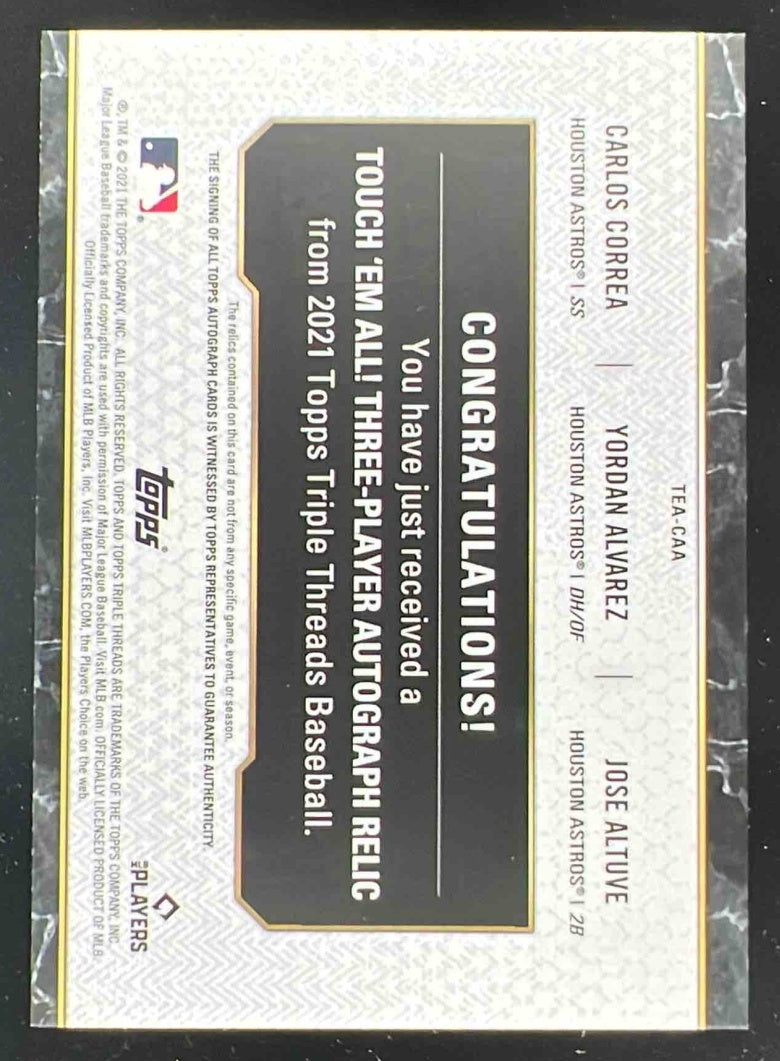 2021 Topps Triple Thread Relic Yordan Alvarez Jose Altuve Carlos Correa Auto /18