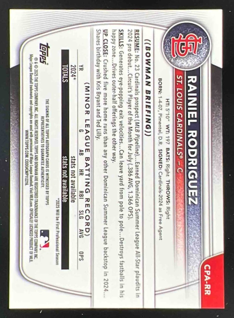 2025 Bowman Chrome Chrome Autograph #CPA-RR Rainiel Rodriguez RC Auto