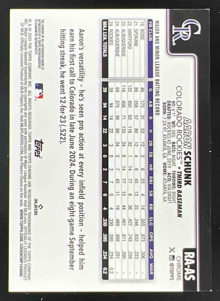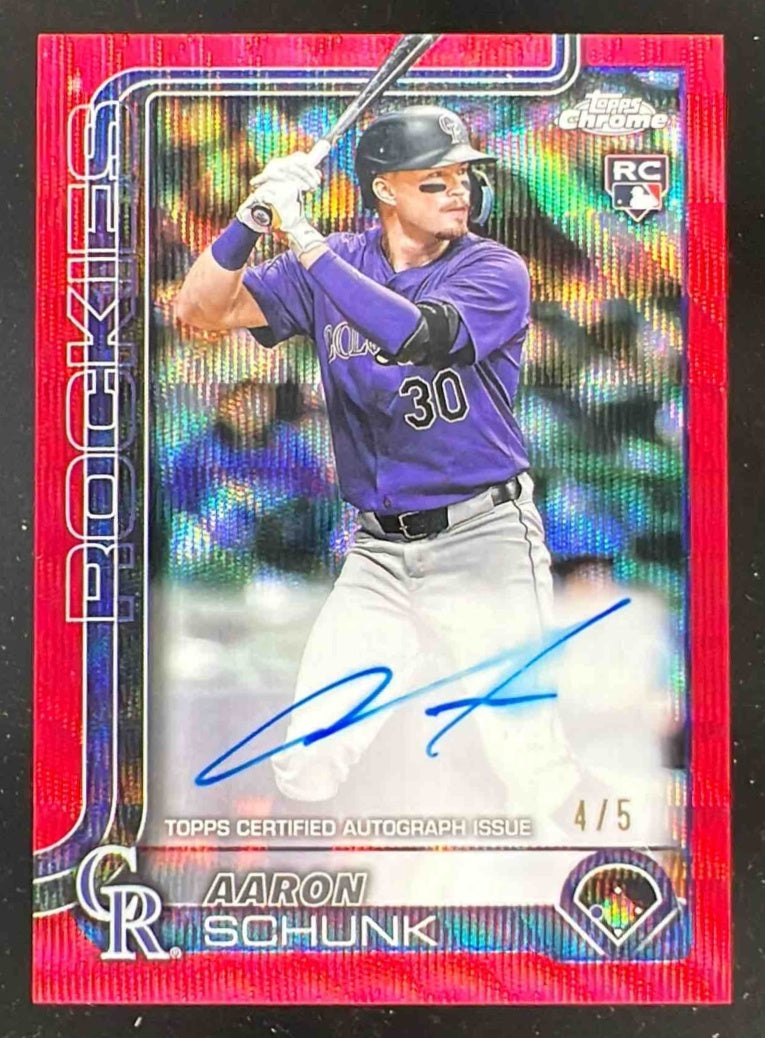 2025 Topps Chrome Rookie Autographs Red Wave #RA-AS Aaron Schunk RC Auto /5