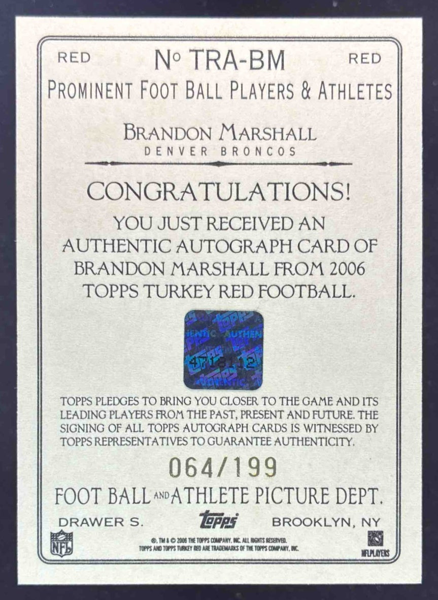 2006 Topps Turkey Red Autographs Red #TRA-BM Brandon Marshall RC Auto /199