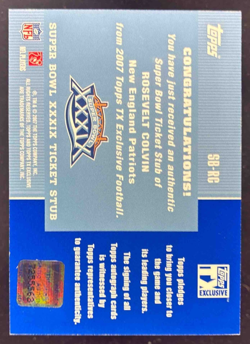 2007 Topps TX Exclusive Super Bowl Ticket Stub Autographs Rosevelt Colvin Auto