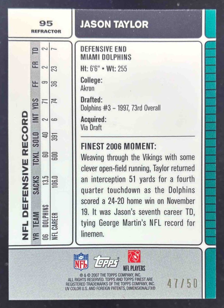 2007 Topps Finest Gold Refractors #95 Jason Taylor /50