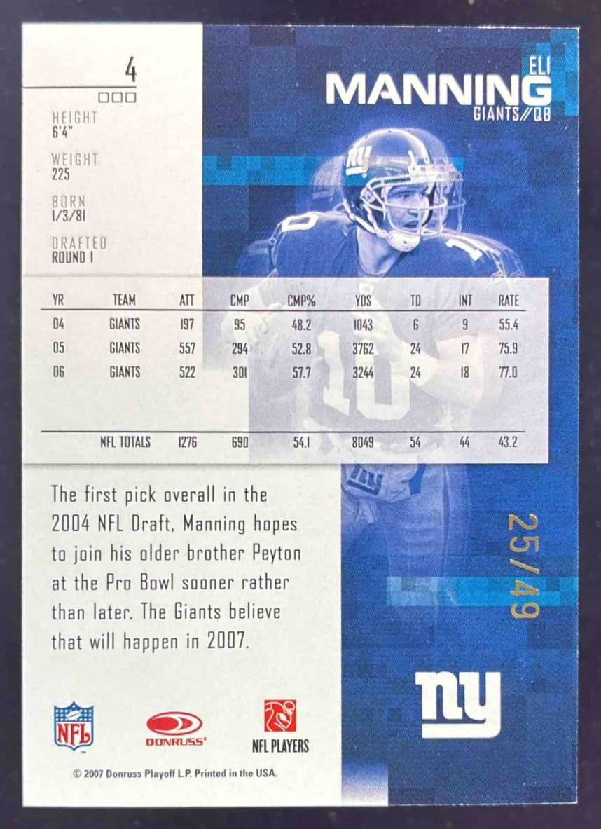 2007 Leaf Rookies & Stars Gold #4 Eli Manning /49