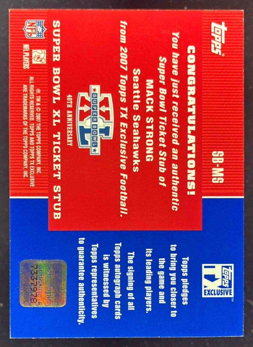 2007 Topps TX Exclusive Super Bowl Ticket Stub Autograph #SB-MS Mack Strong Auto