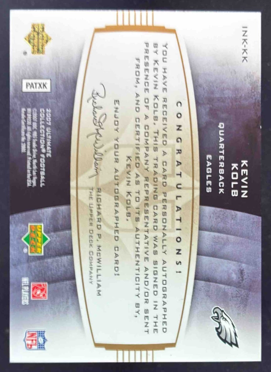 2007 Upper Deck Ultimate Collection Ultimate Ink #INK-KK Kevin Kolb RC Auto /25