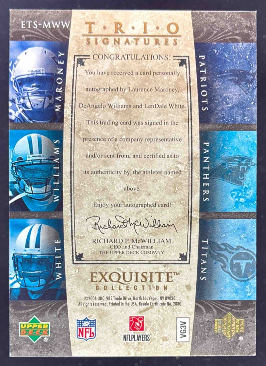 2006 Exquisite Trios Laurence Maroney DeAngelo Williams LenDale White Auto /15