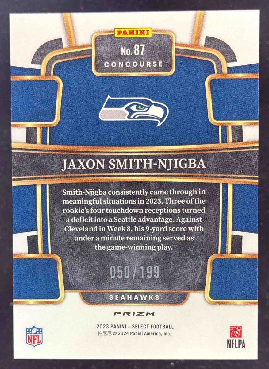2023 Panini Select Blue Prizms #87 Jaxon Smith-Njigba RC Concourse /199