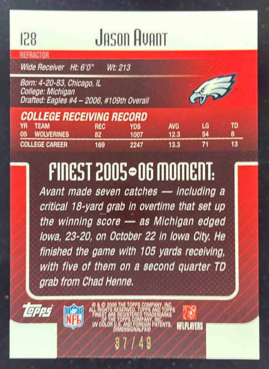 2006 Topps Finest Gold Refractors #128 Jason Avant RC /49