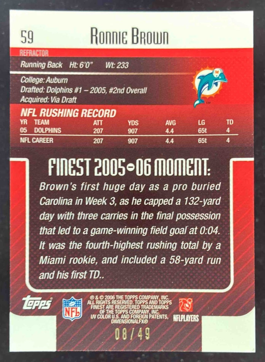 2006 Topps Finest Gold Refractors #59 Ronnie Brown /49