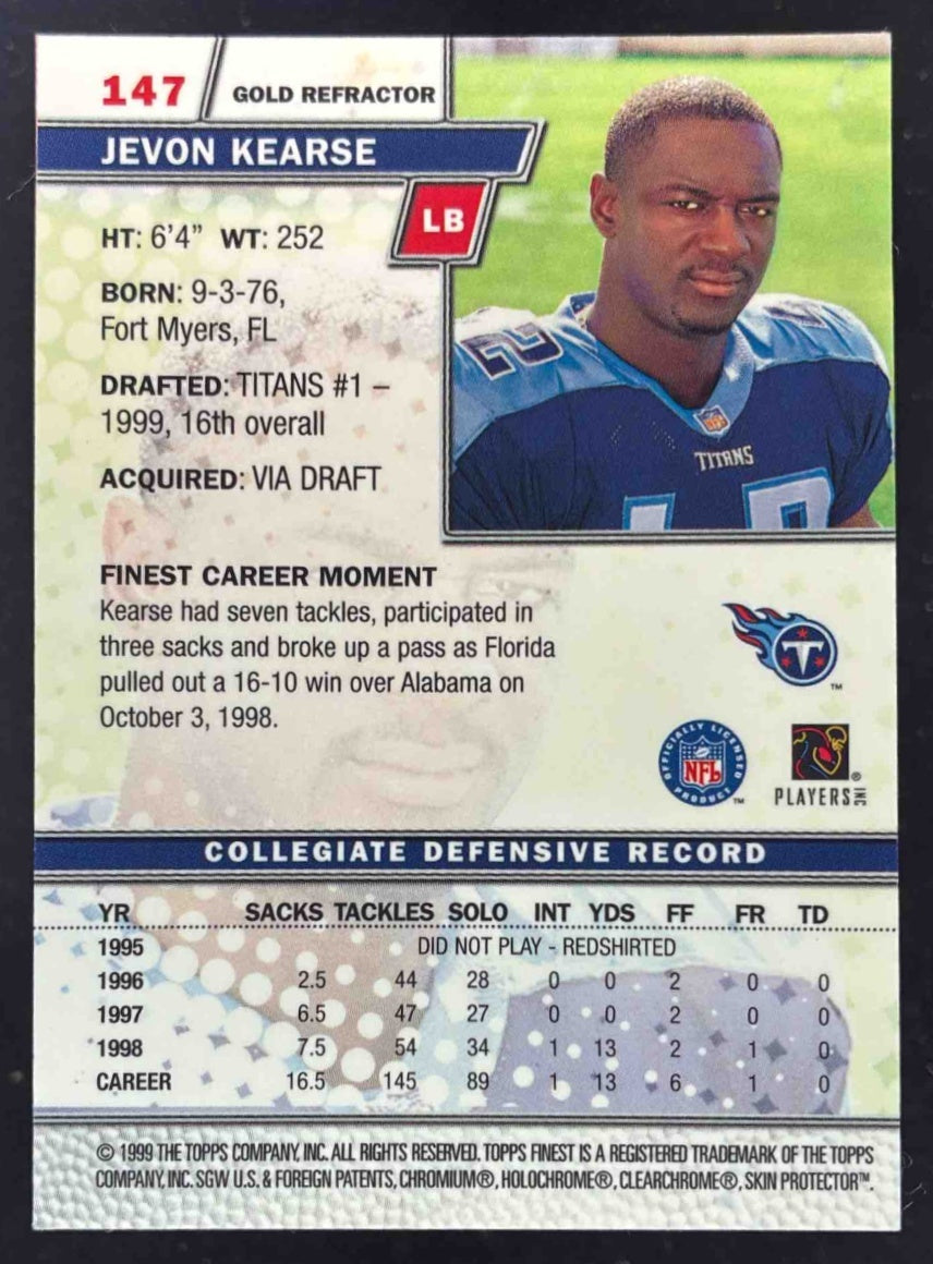 1999 Topps Finest Gold Refractors #147 Jevon Kearse RC /100