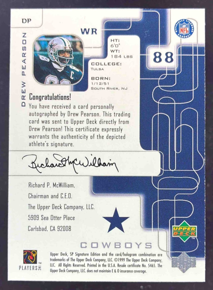 1999 SP Signature Autographs #DP Drew Pearson Auto