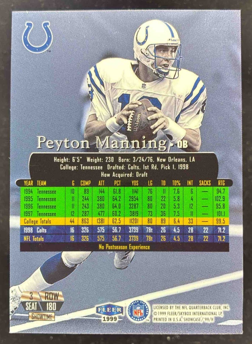 1999 Fleer Flair Showcase #180 Peyton Manning Row 3 /1999