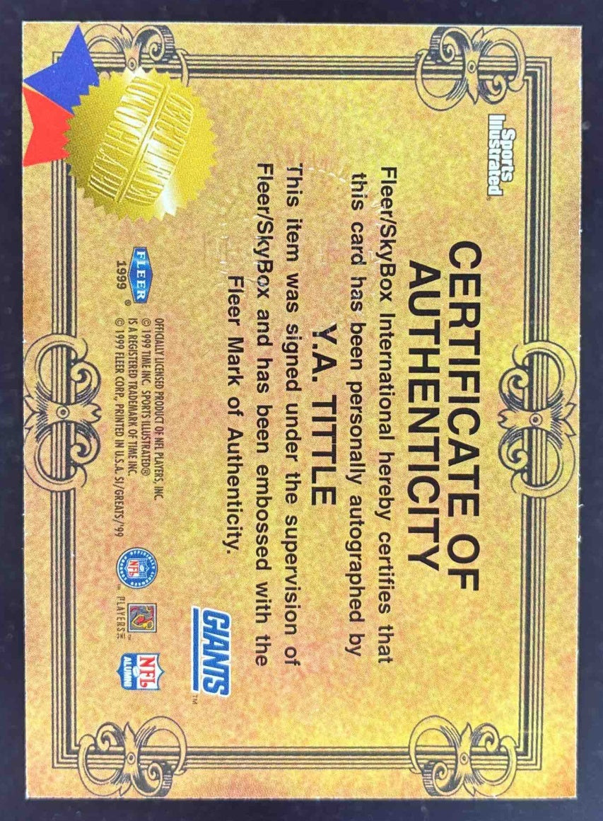 1999 Fleer Sports Illustrated Y.A. Tittle Autograph Auto