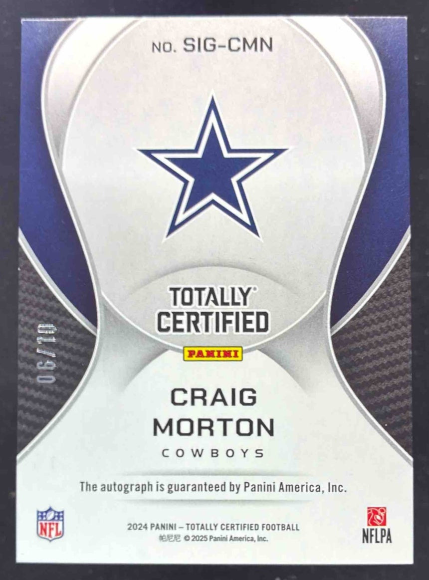 2024 Totally Certified Signatures Mirror Platinum Gold #10 Craig Morton Auto /10