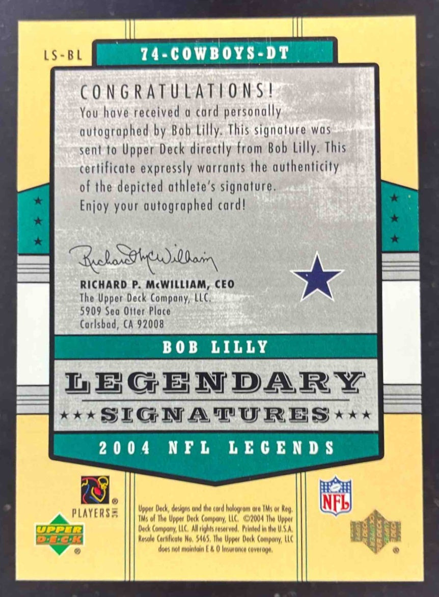 2004 Upper Deck Legends Legendary Signatures #LS-BL Bob Lilly Auto