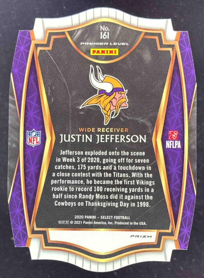 2020 Panini Select Tri Color Prizm Die Cut #161 Justin Jefferson RC Premier