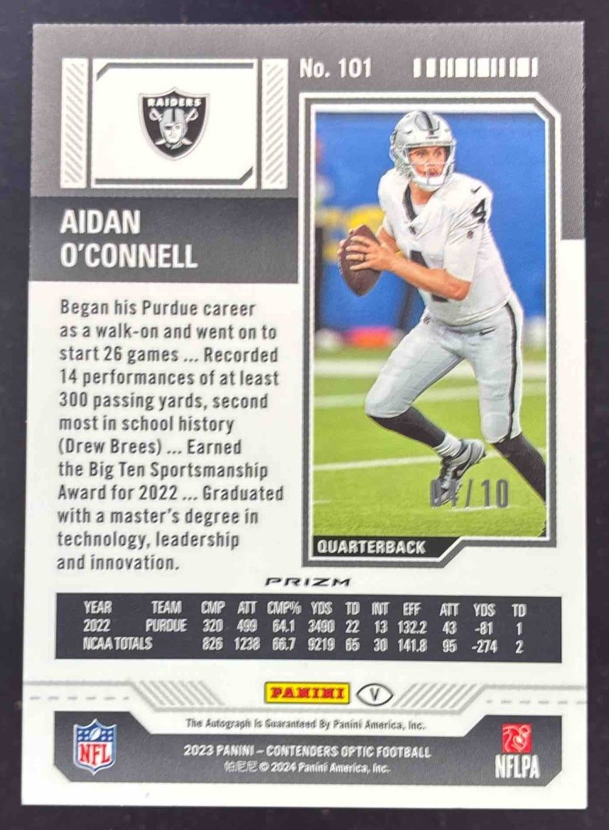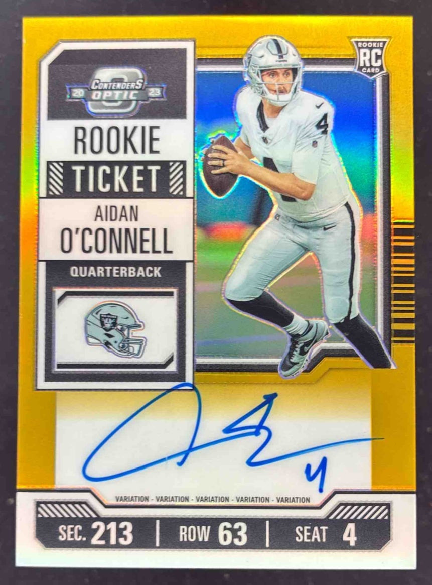 2023 Contenders Optic Gold #101b Aidan O'Connell Rookie Ticket RC Auto /10