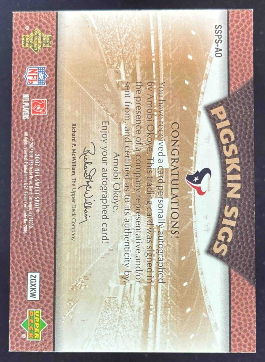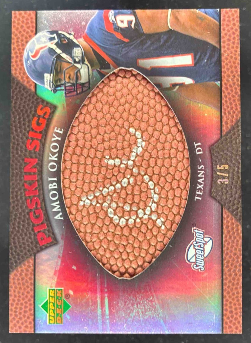 2007 Upper Deck Sweet Spot Pigskin Sigs Red SN5 #SSPS-AO Amobi Okoye RC Auto /5