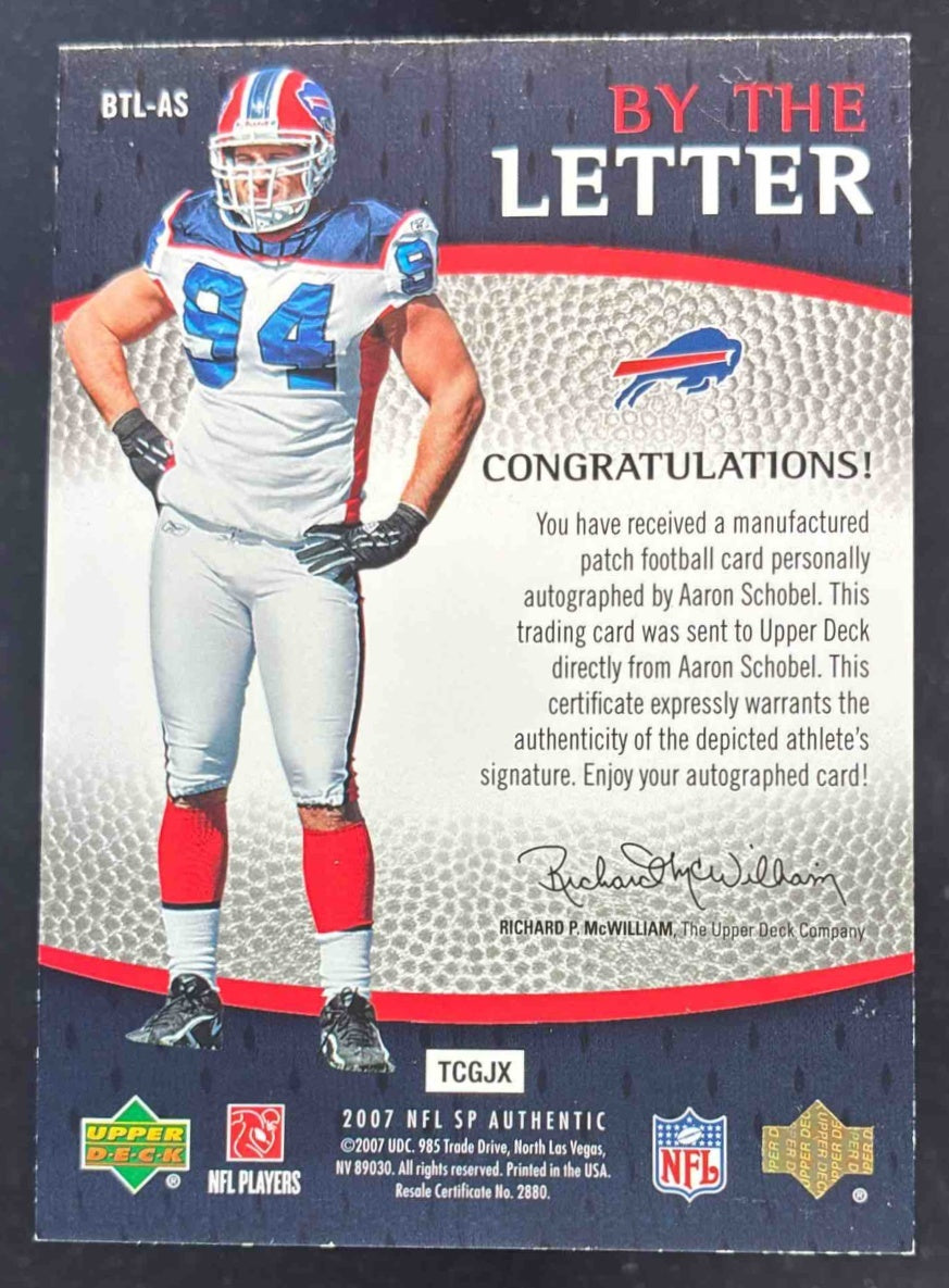 2007 SP Authentic By The Letter Autographs #BTL-AS Aaron Schobel Auto /75