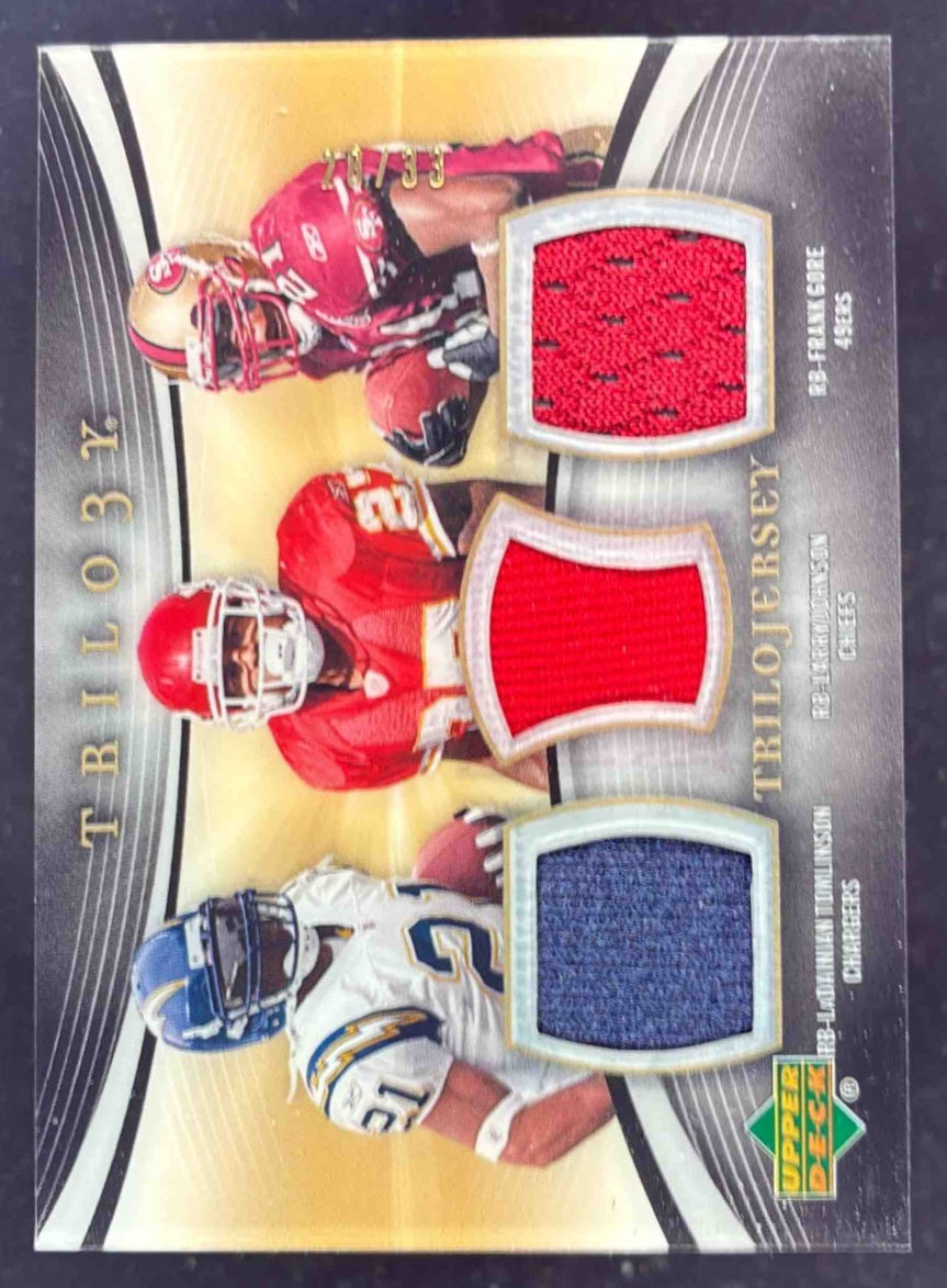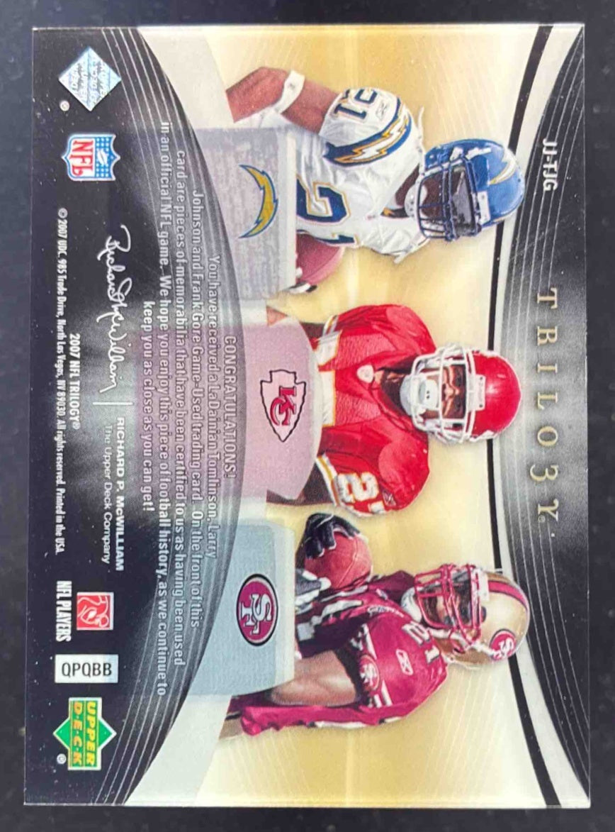 2007 UD Trilogy Trilojerseys Larry Johnson LaDainian Tomlinson Frank Gore /33