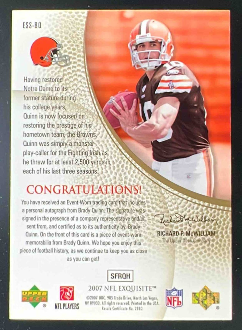2007 Exquisite Collection Swatches Patch #ESS-BQ Brady Quinn RC Auto /25