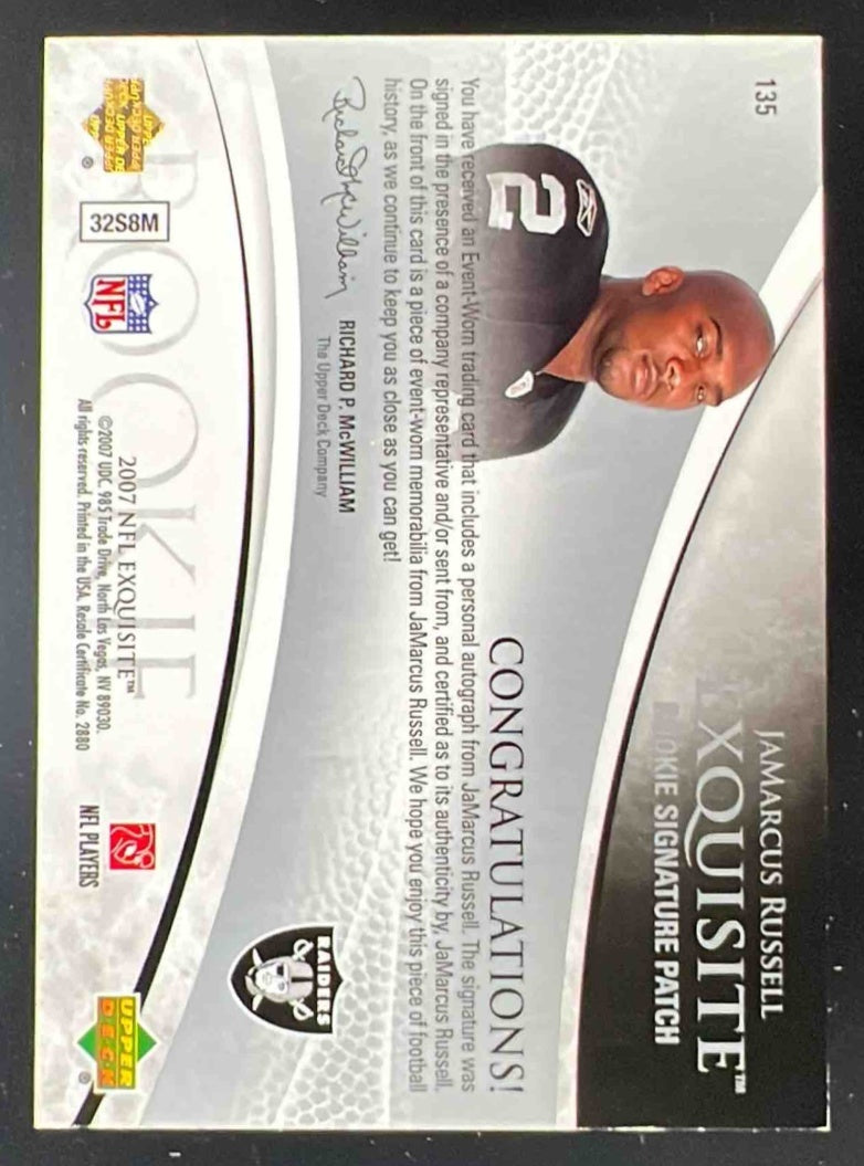 2007 Upper Deck Exquisite Collection #135 JaMarcus Russell RC Auto /99