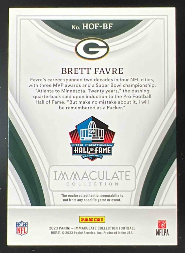 2023 Panini Immaculate Collection Immaculate HOF Jerseys #HOF-BF Brett Favre /49