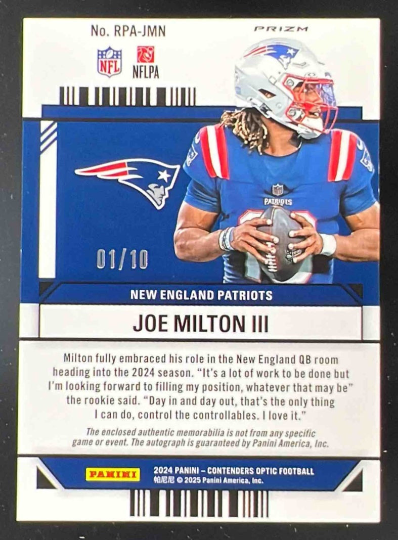 2024 Contenders Optic Rookie Patch Black Scope Prizm Joe Milton III RC Auto /10