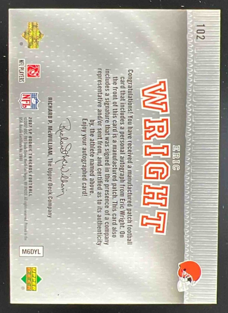 2007 SP Rookie Threads Rookie Lettermen Gold #102a Eric Wright RC Auto /99
