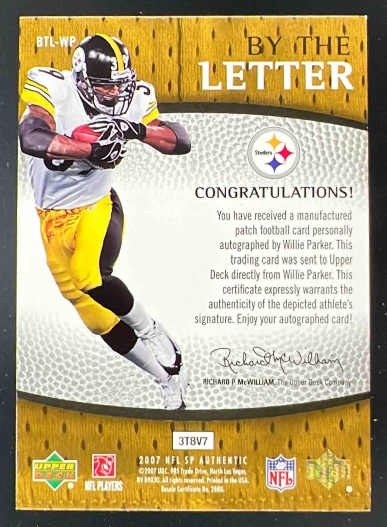 2007 SP Authentic By The Letter Autographs #BTL-WP Willie Parker Auto /25