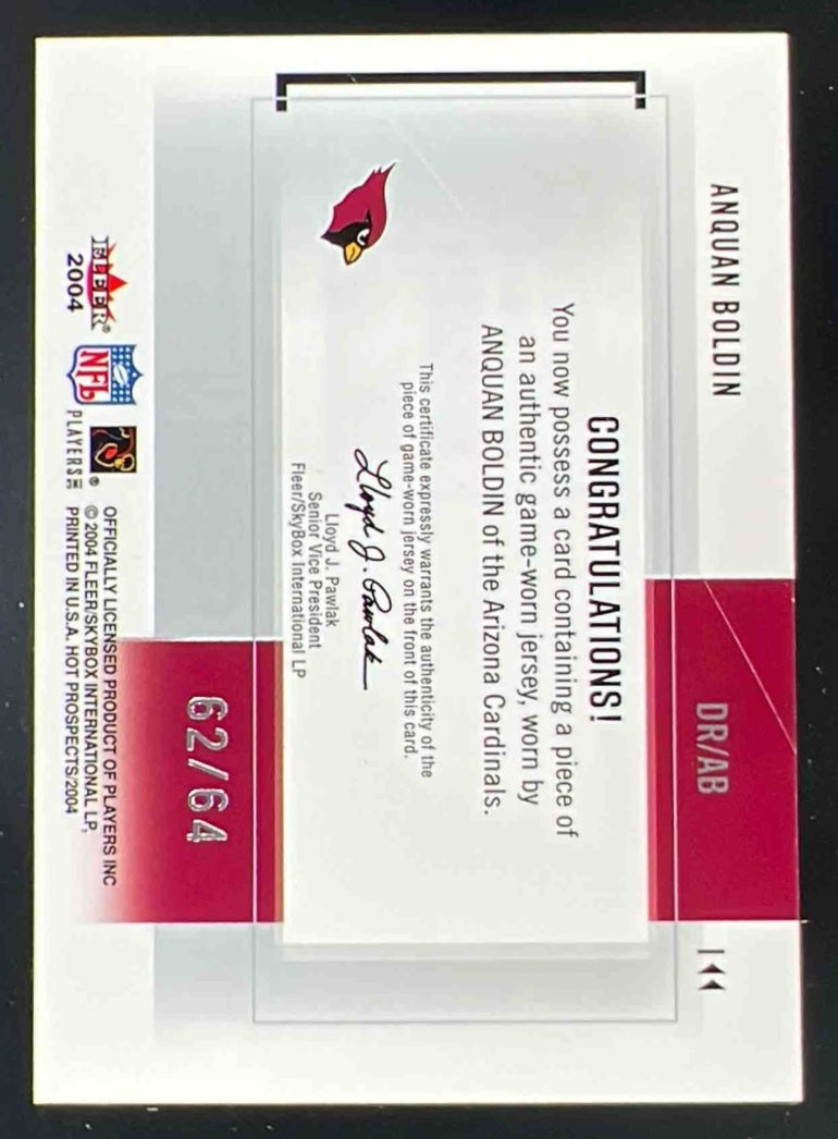 2004 Fleer Hot Prospects Draft Rewind Jersey Patches #DR/AB Anquan Boldin /64