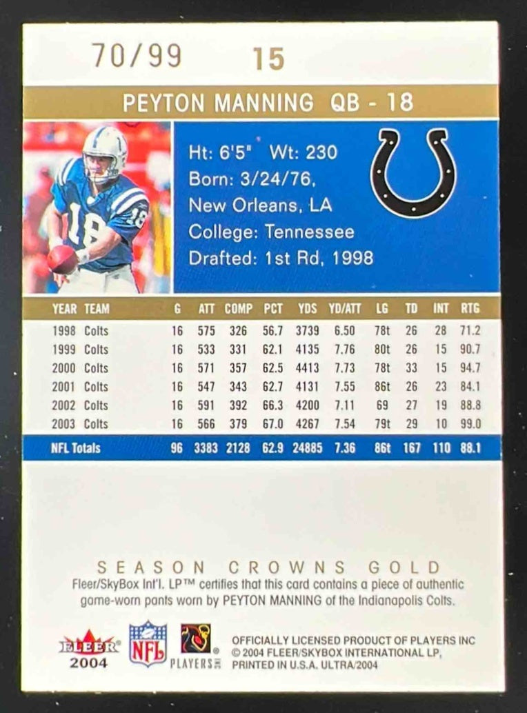 2004 Fleer Ultra Season Crowns Game Used Gold #15 Peyton Manning /99