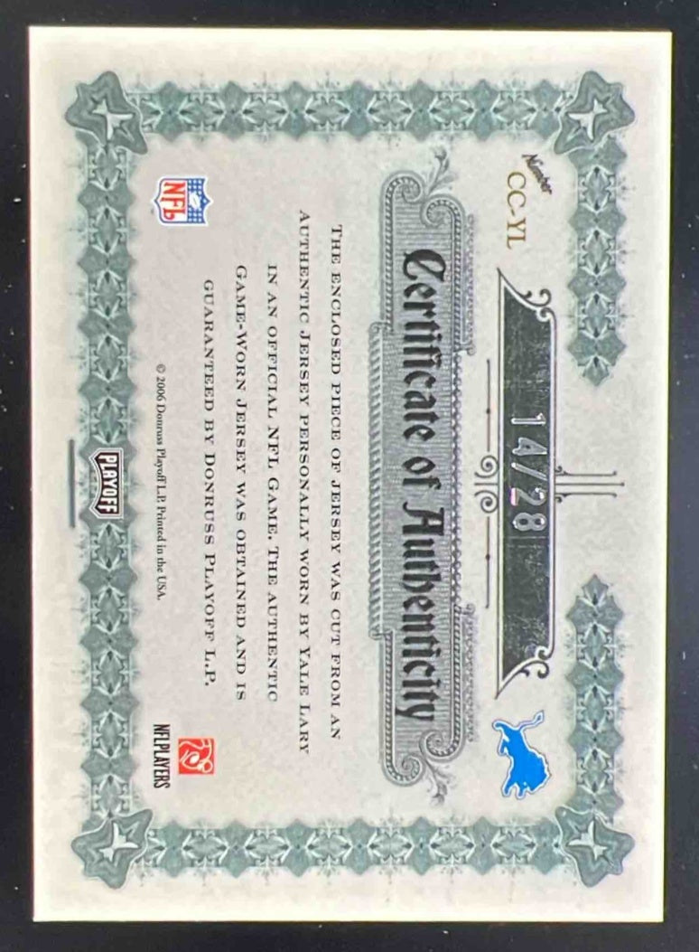 2006 National Treasures Classics Materials Jersey Number Yale Lary Auto /28