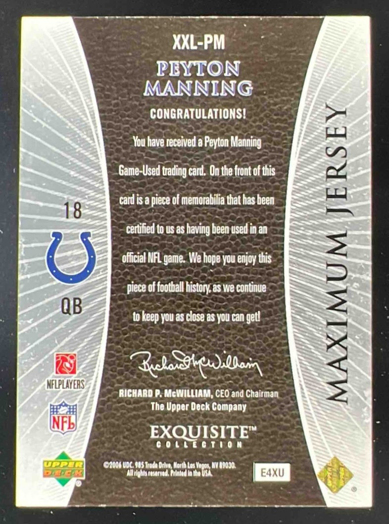 2006 Exquisite Collection Maximum Jersey Gold #XXL-PM Peyton Manning /35