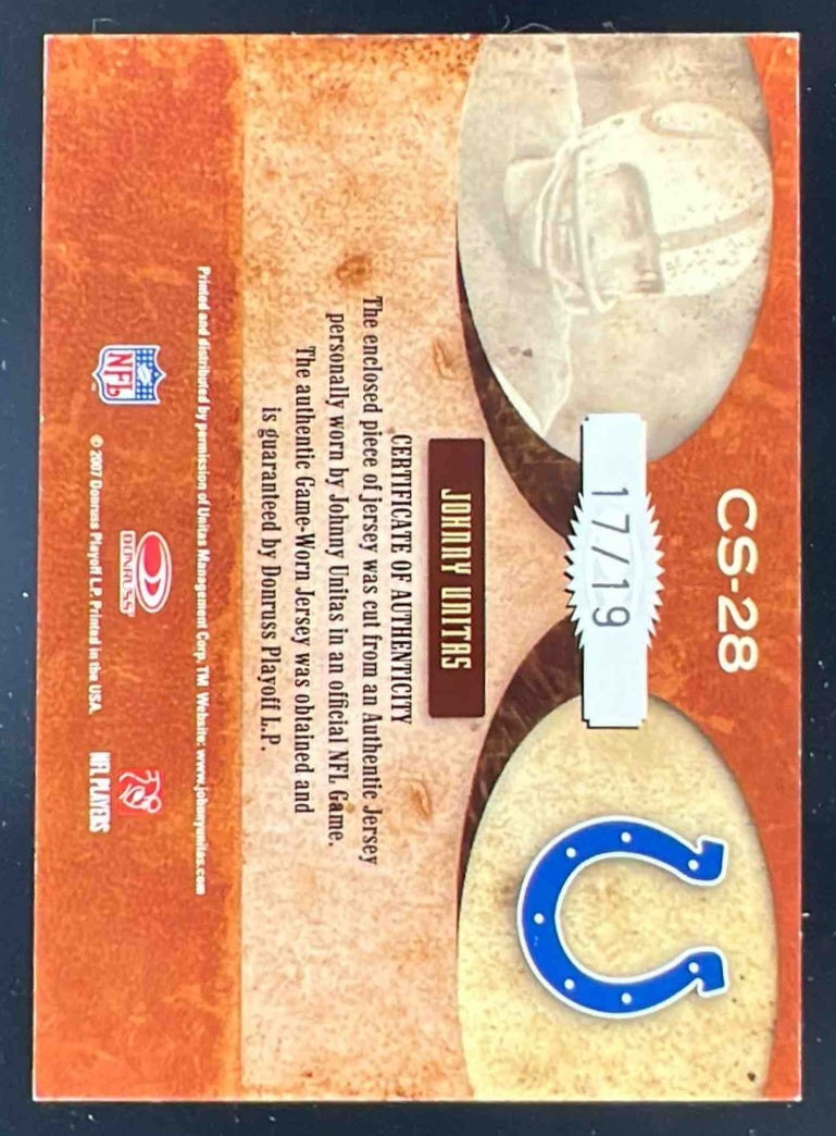 2007 Donruss Classics Classic Singles Jerseys Jersey Numbers Johnny Unitas /19