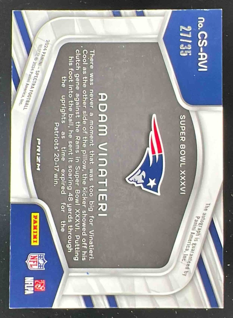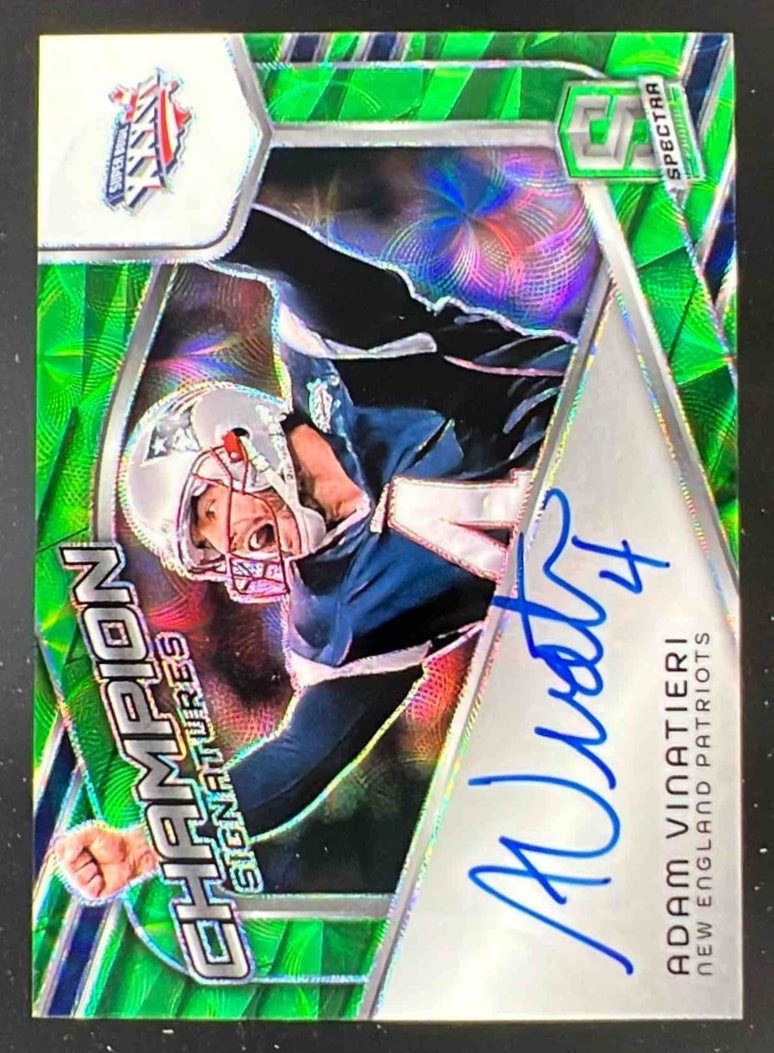 2024 Spectra Champion Signatures Neon Green #CS-AVI Adam Vinatieri Auto /35
