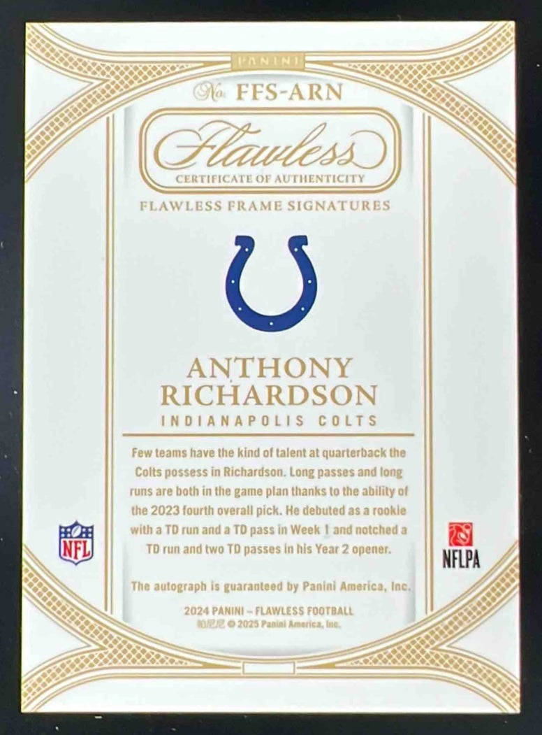 2024 Panini Flawless Flawless Frame Signatures #9 Anthony Richardson Auto /25