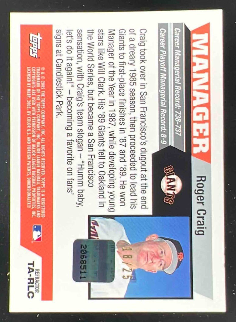 2005 Topps Retired Signature Edition Refractors #TA-RLC Roger Craig Auto /25