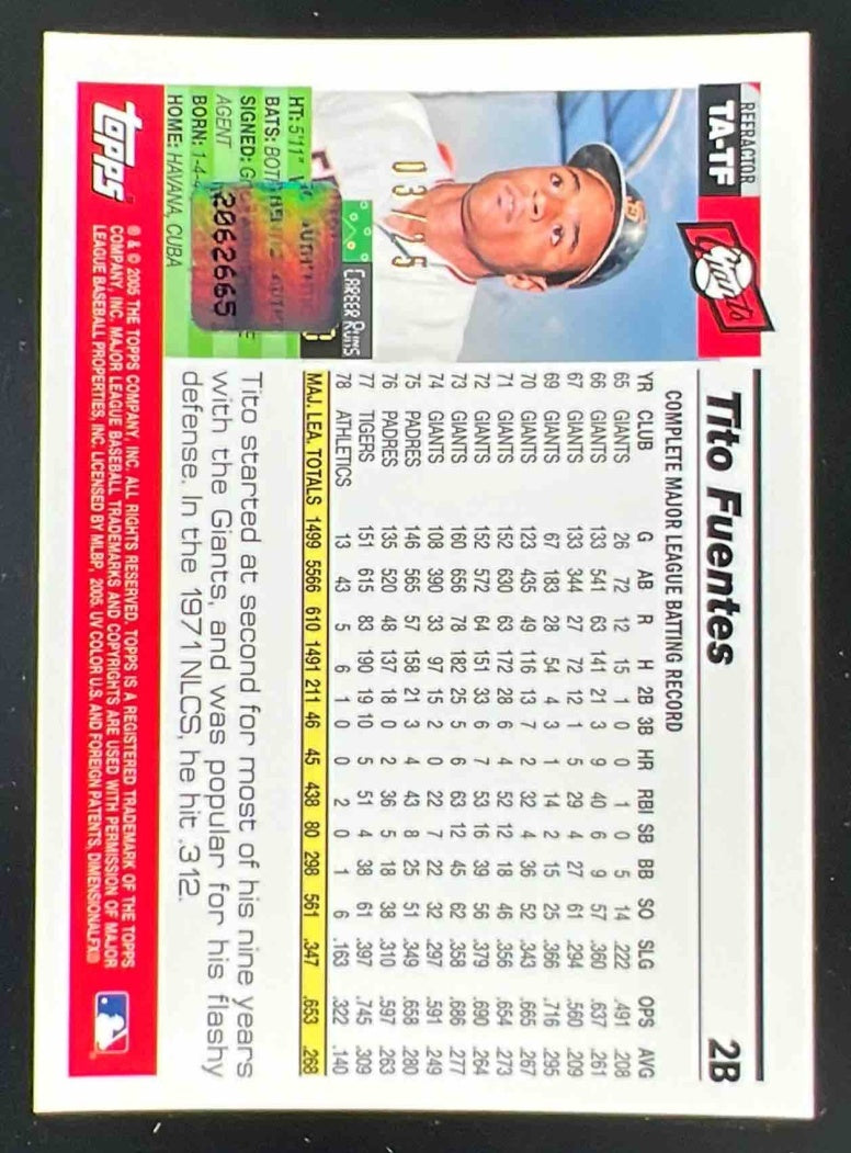 2005 Topps Retired Signature Edition Refractors #TA-TF Tito Fuentes Auto /25