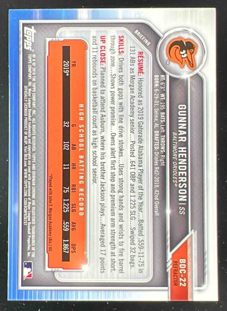 2019 Bowman Draft Chrome Refractor #BDC-22 Gunnar Henderson