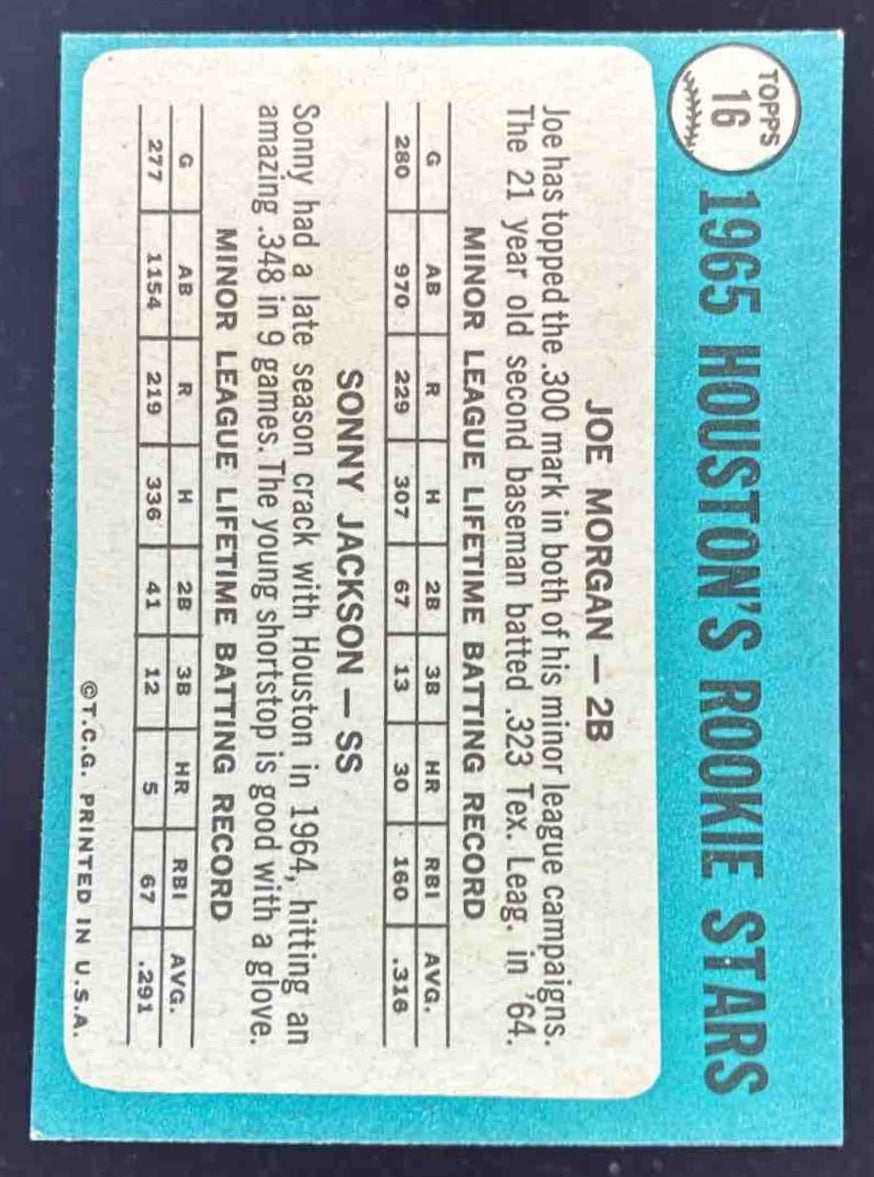 1965 Topps #16 Houston 1965 Rookie Stars Joe Morgan Sonny Jackson RC