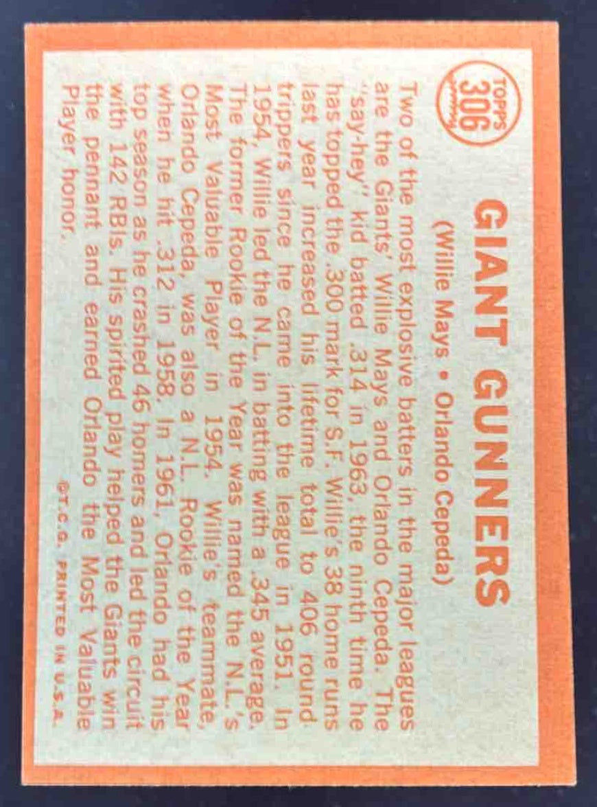 1964 Topps #306 Giant Gunners (Willie Mays Orlando Cepeda) C UER
