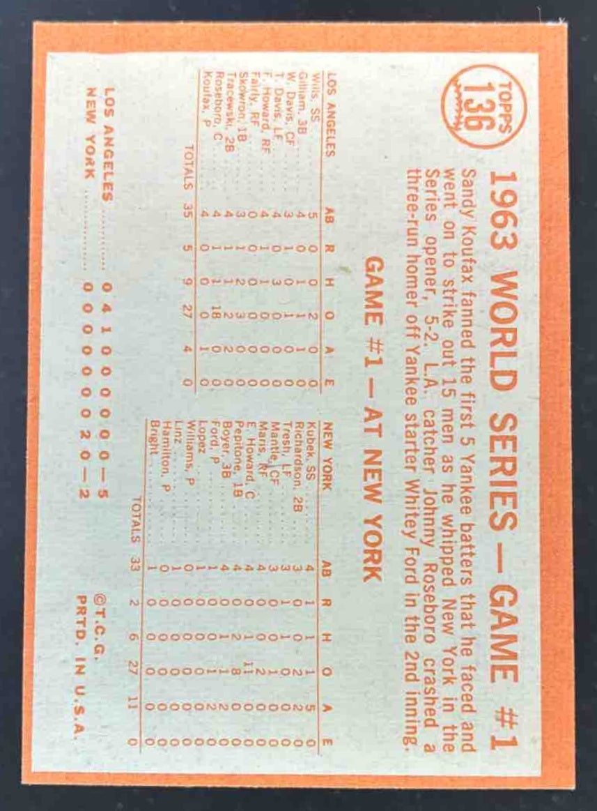1964 Topps #136 World Series Game #1 - Koufax Strikes Out 15