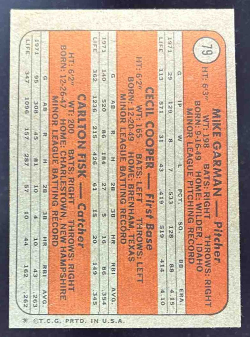 1972 Topps #79 Red Sox Mike Garman Cecil Cooper Carlton Fisk RC
