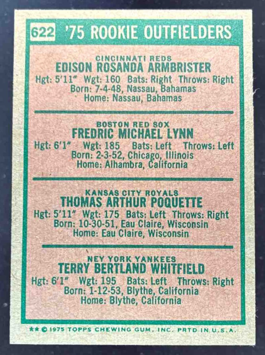 1975 Topps #622 Ed Armbrister Fred Lynn Tom Poquette Terry Whitfield RC