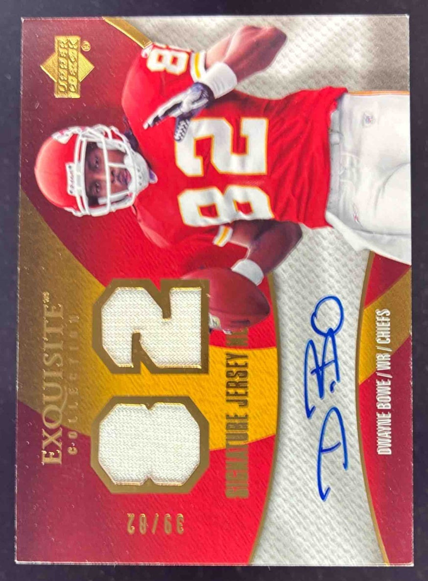 2007 Exquisite Collection Signature Jersey Numbers #DB Dwayne Bowe RC Auto /82
