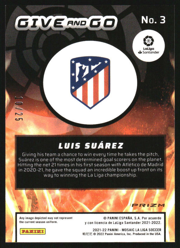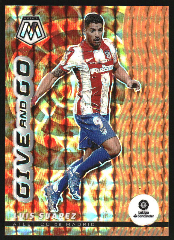 2021 Panini Mosaic La Liga Give and Go Mosaic Orange Fluorescent Luis Suarez /25