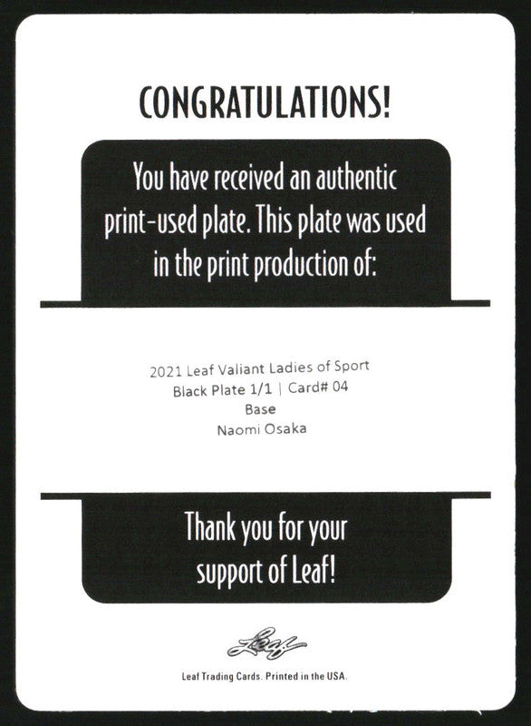 2021 Leaf Valiant Ladies of Sport Printing Plate Black Naomi Osaka 1/1