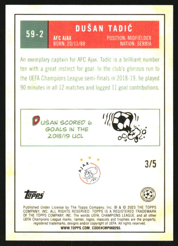 2022-23 Topps UEFA Club Competitions '59 Topps Red #592 Dusan Tadic /5