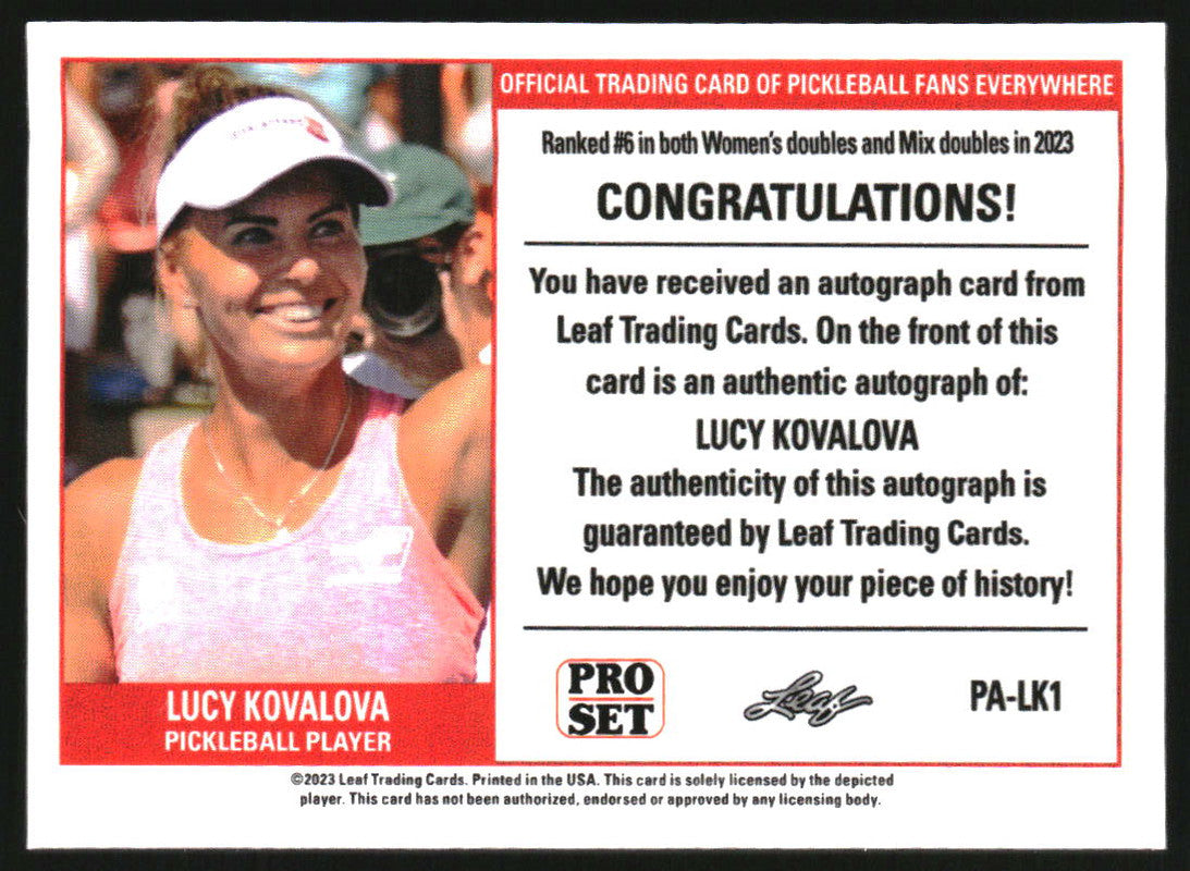 2023 Leaf Pro Set Pickleball Player Autograph Lucy Kovalova Auto /2093